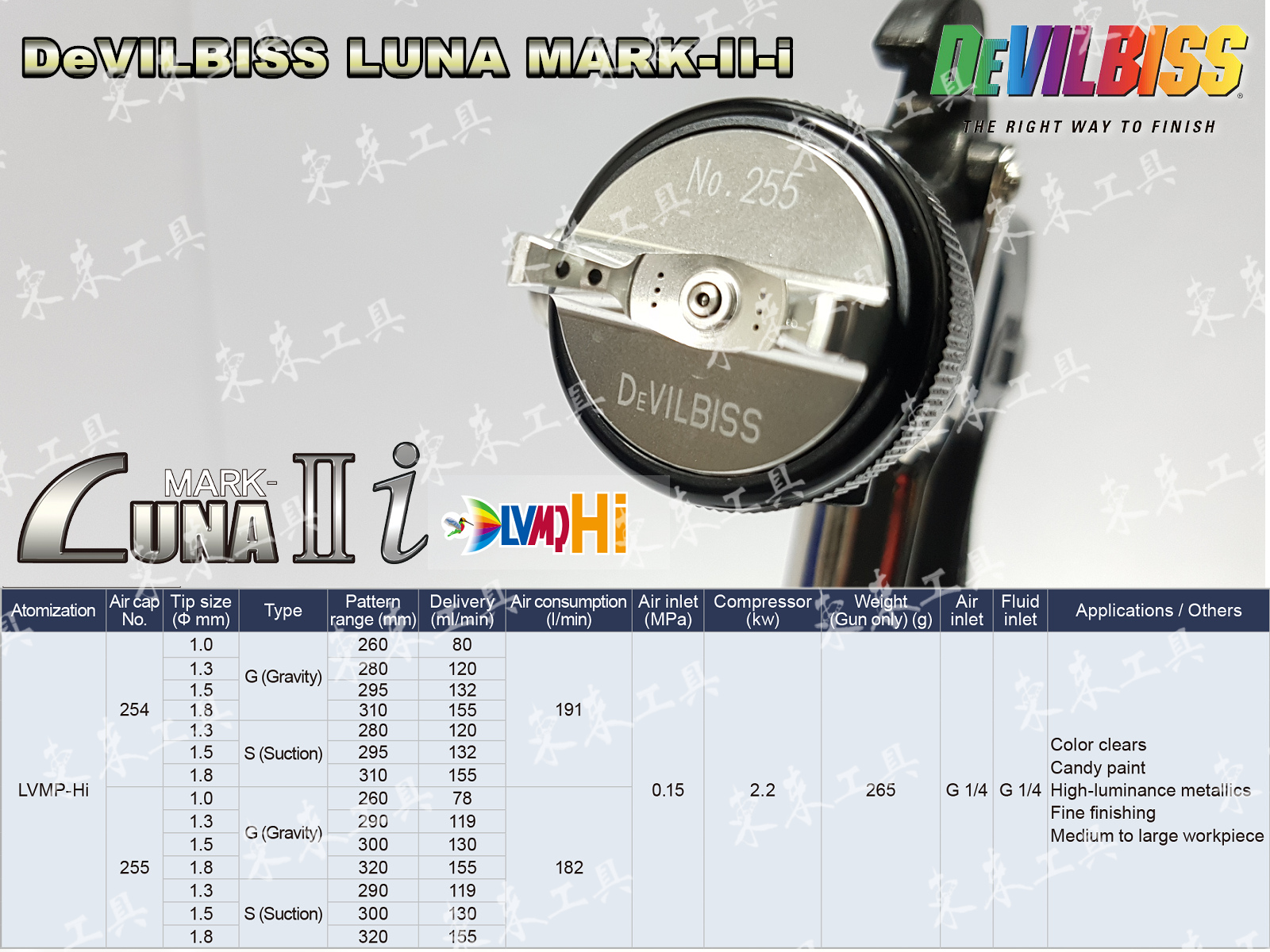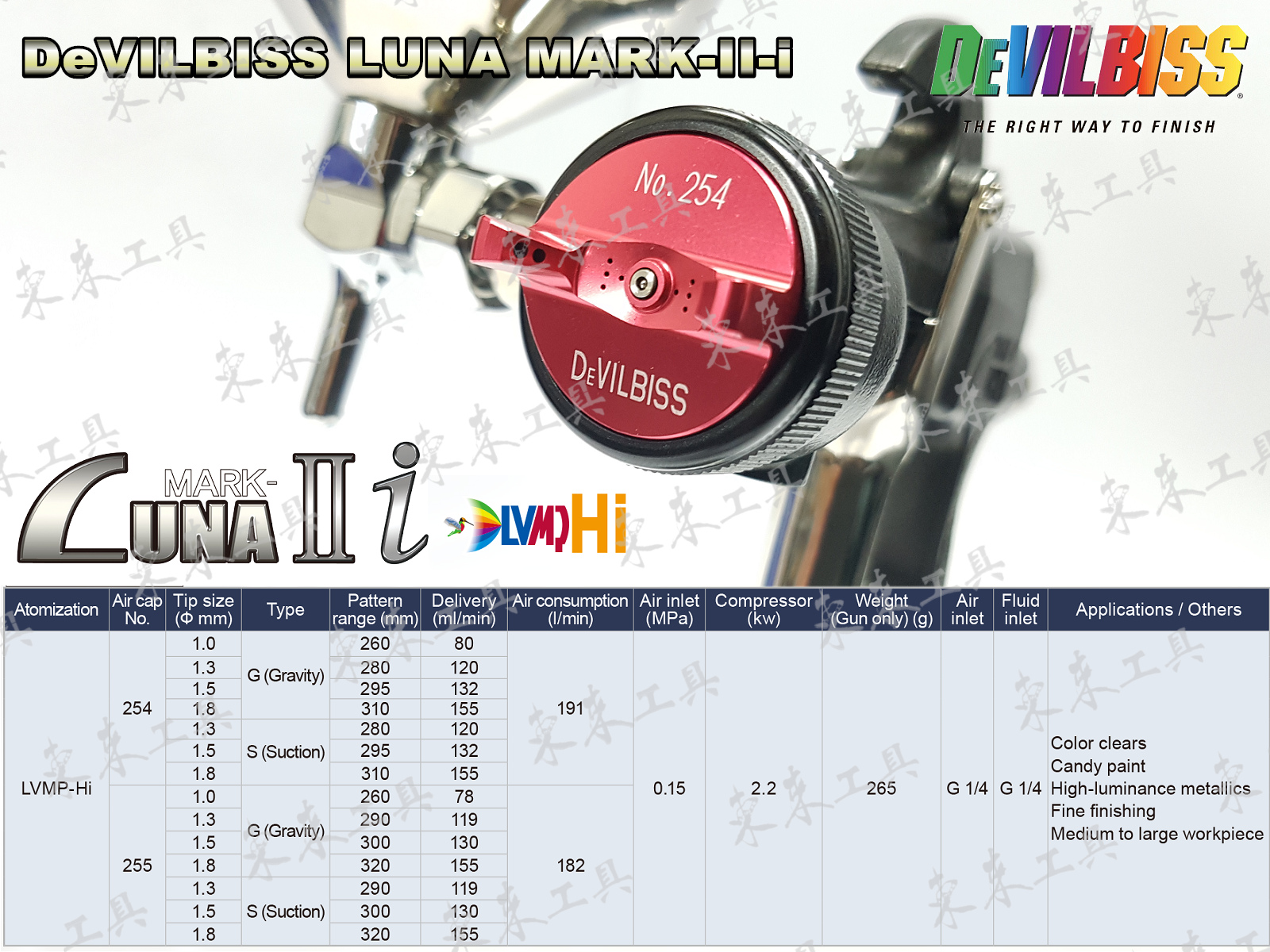 日本 DEVILBISS LUNA2i R 254 255 LVMP 重力式噴槍