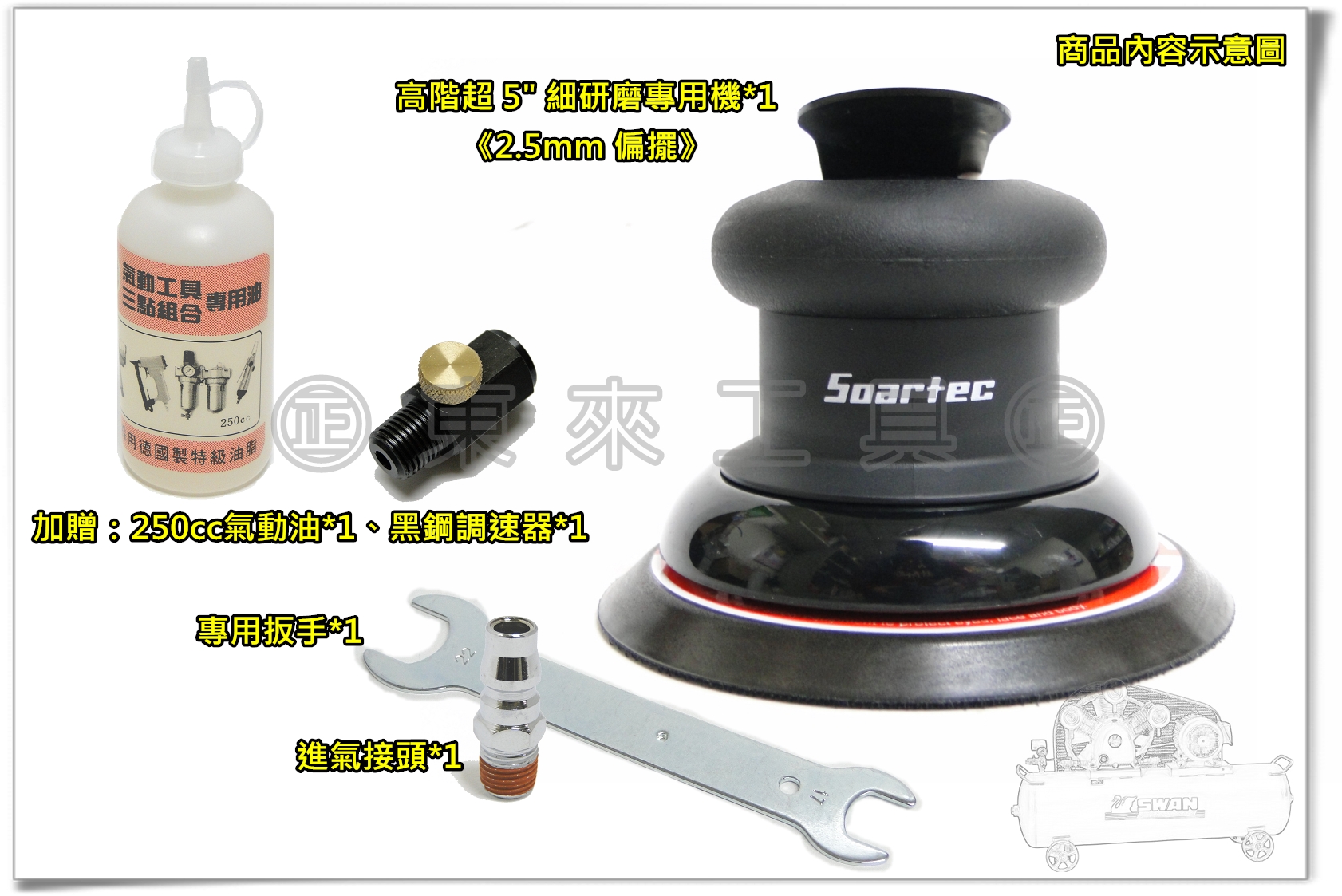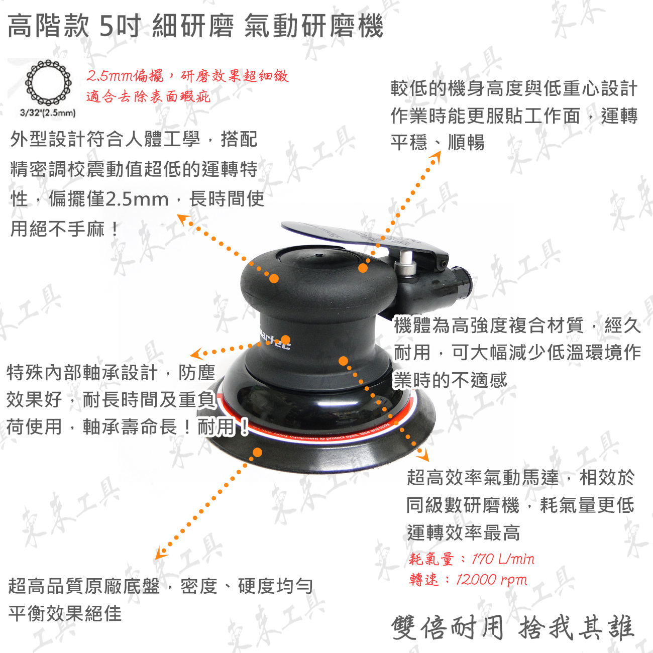 高階款 5吋 精細研磨 2.5mm偏擺 氣動研磨機 無集塵