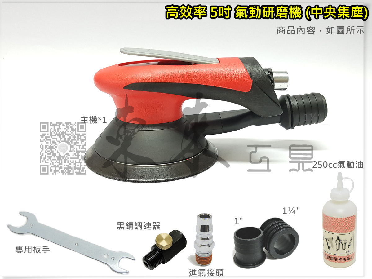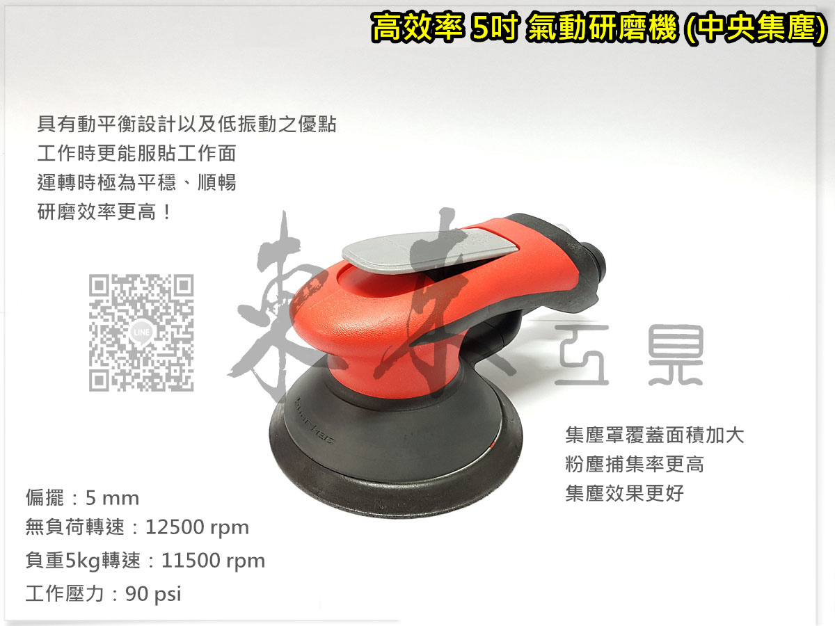 高階款 5吋 125mm 高效率 氣動研磨機 中央集塵