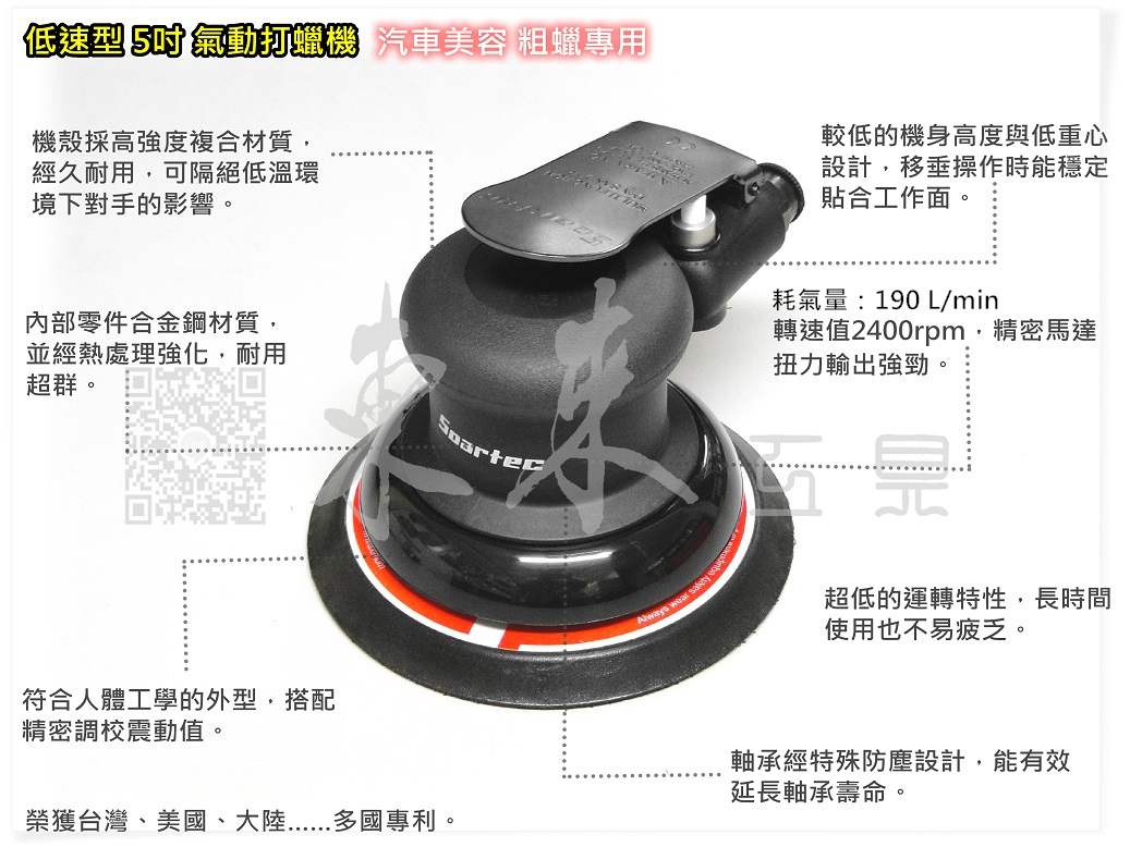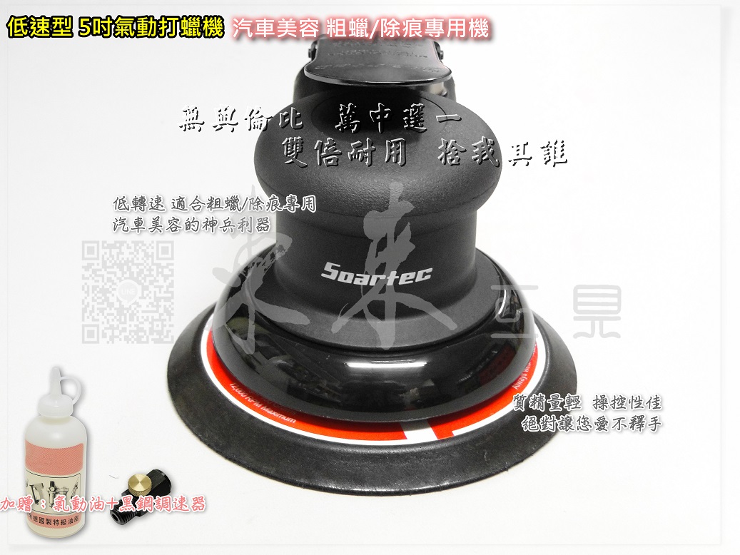 高階款 5吋 125mm 低轉速 齒輪式 粗蠟 氣動研磨機 無集塵