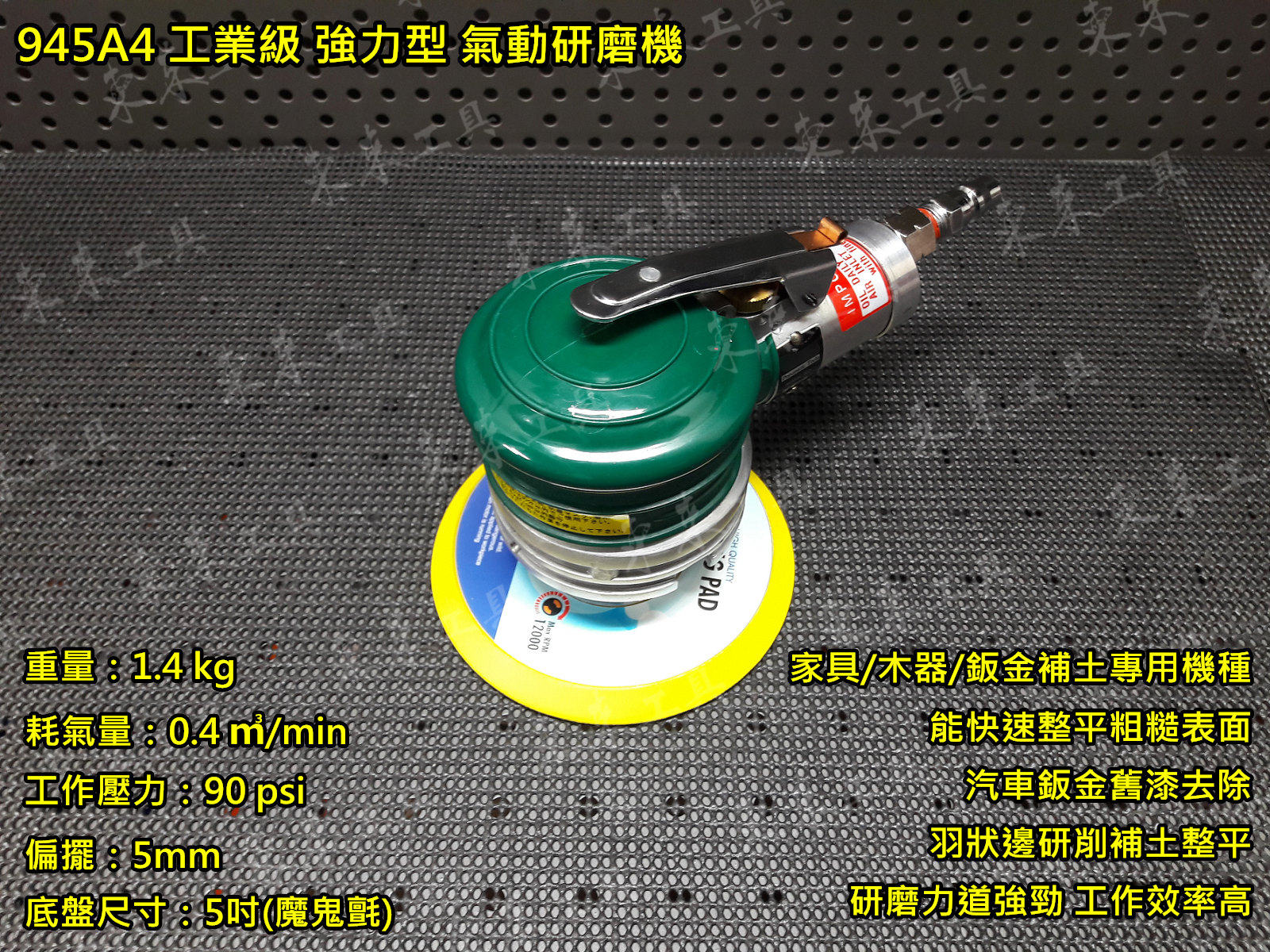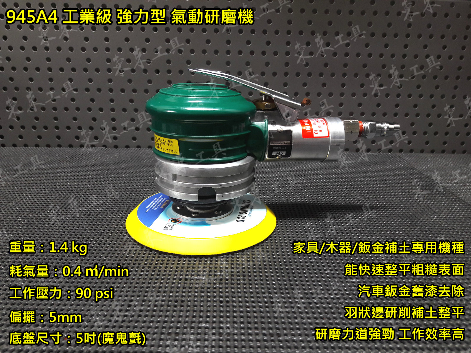 工業級 945A4 短柄 強力重切削 5吋 雙軌道 氣動磨砂機