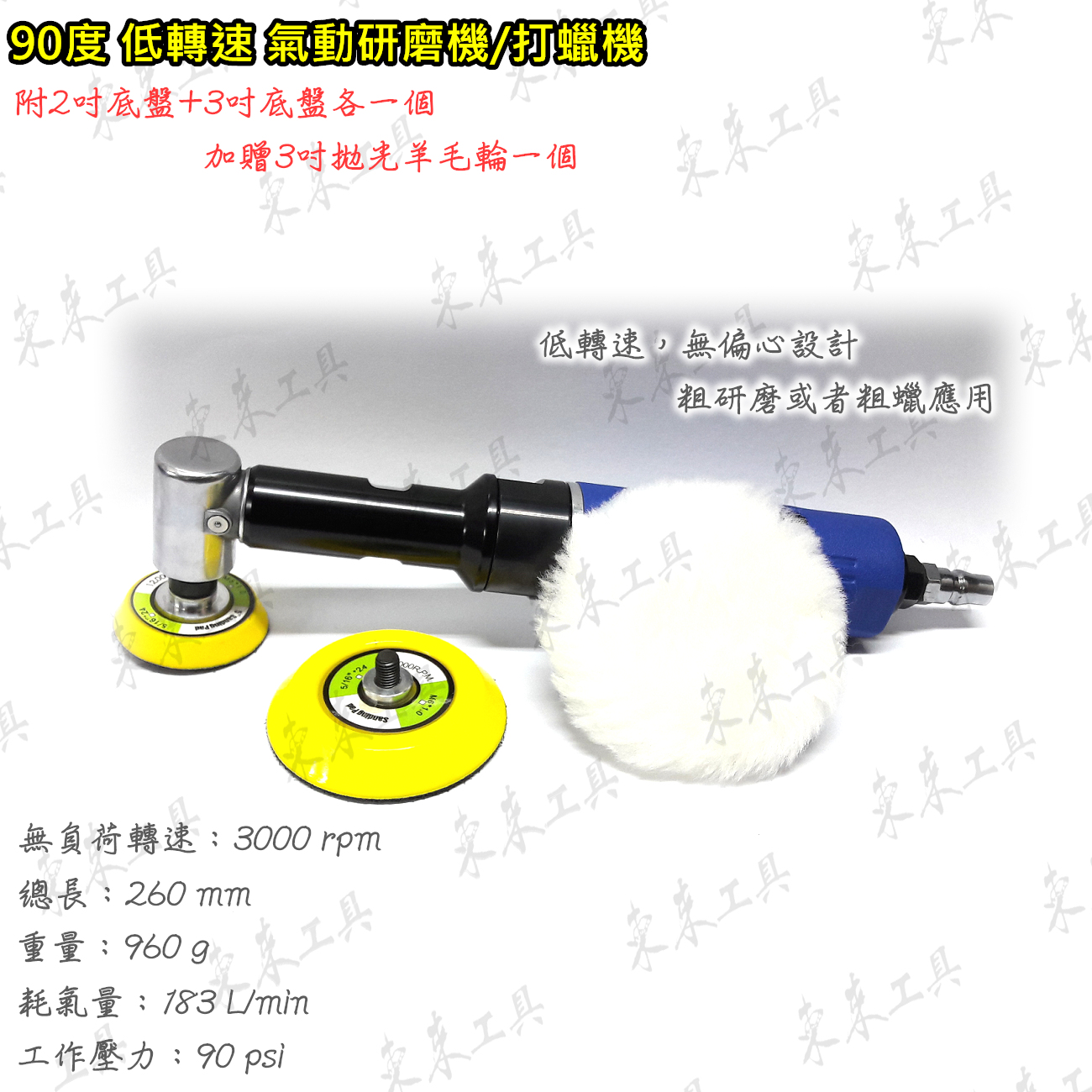 L型 90度 加長 氣動研磨機 2吋 3吋 L型 氣動打蠟機