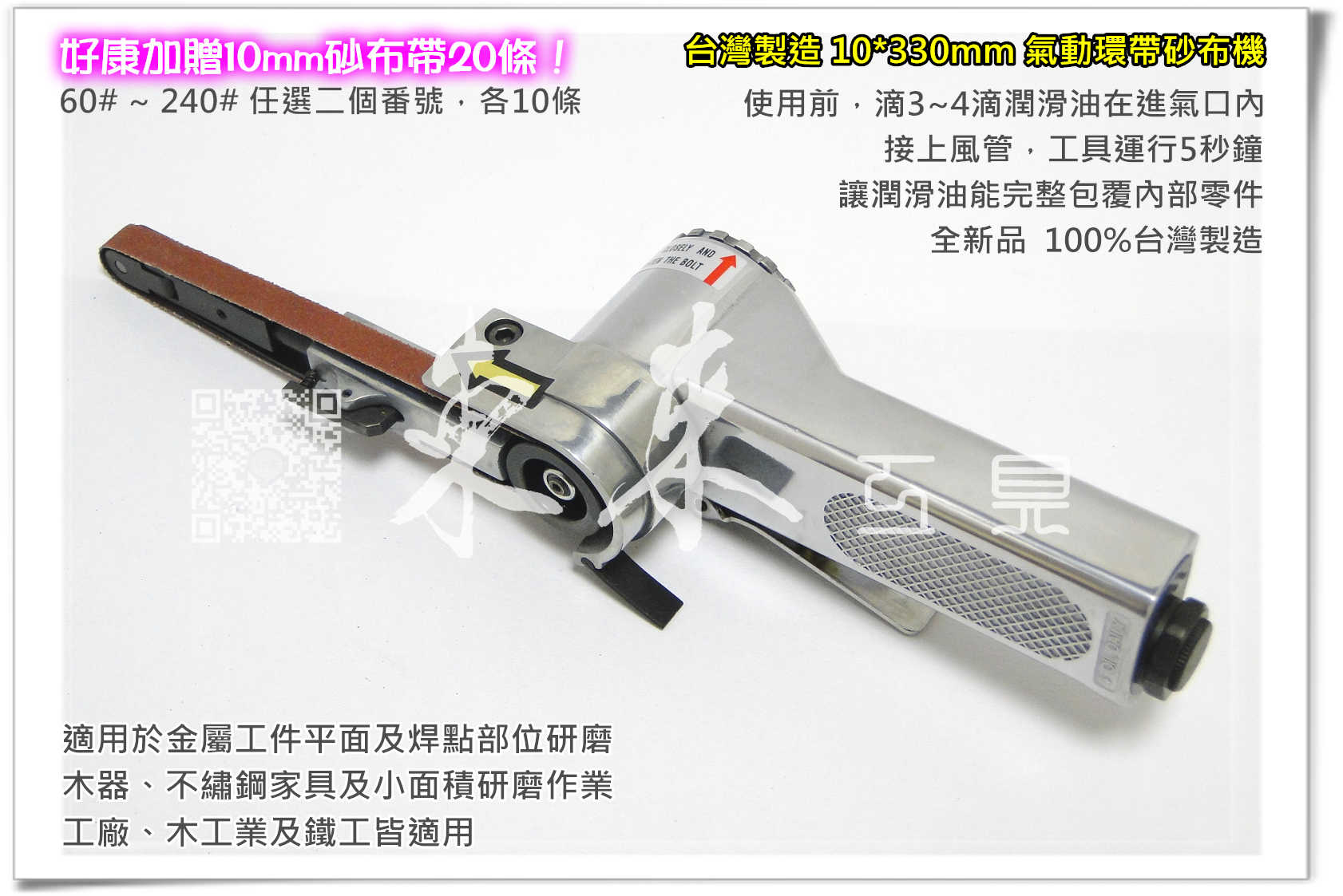 專業級 10*330mm 砂布環帶機 台灣製造 研磨 除焊點 氣動研磨機