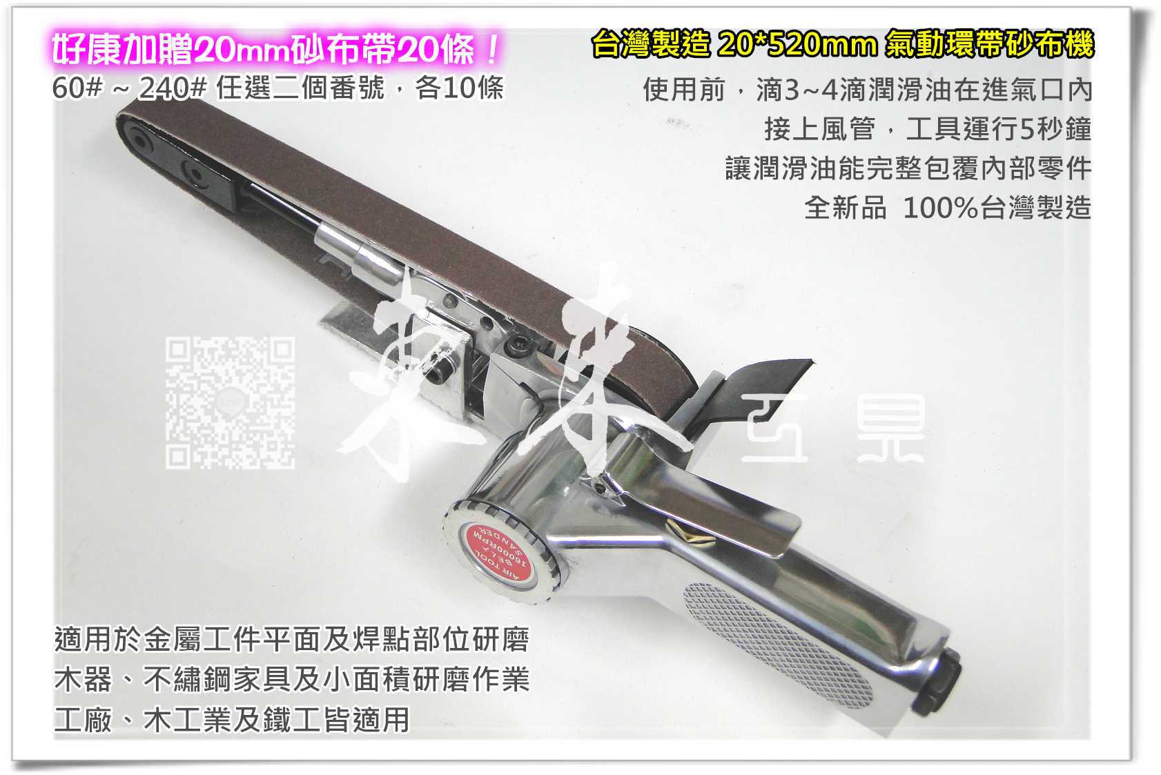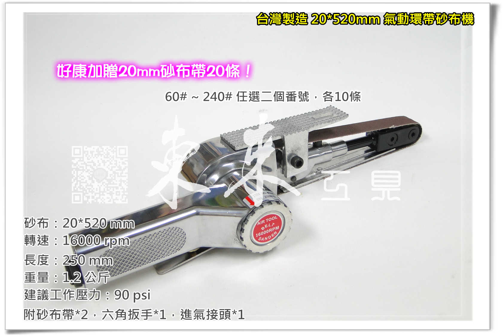 專業級 20*520mm 台灣製造 氣動砂布環帶機 氣動環帶研磨機 砂布環帶機
